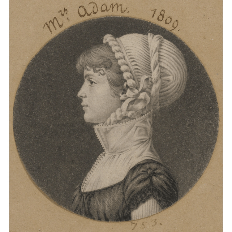 While unpacking Mr. FitzSimons’s trunk, she came across a beautifully written order from one of his clerks for two volumes of poetry: Campbells’s “Pleasures of Hope” and Goldsmith’s “Deserted Village.” She imagined that the young gentleman with such a literary taste must be superior to most of her admirers. The gentleman was John Strong Adams. When she returned to Charleston, they began their courtship, and married 2 March 1803.